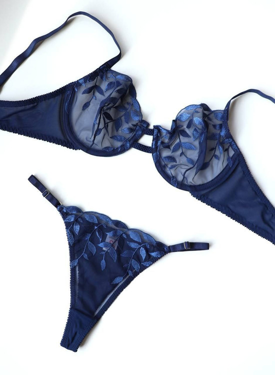 ست شورت و سوتین ژینا، از جنس توری است که روی آن گلدوزی کار شده، سوتین این ست فنردار و کاملا توری است. نوع شورت بکلس، قسمت داخلی فاق آن نخی و کش کمری آن دارای رکاب قابل تنظیم است.