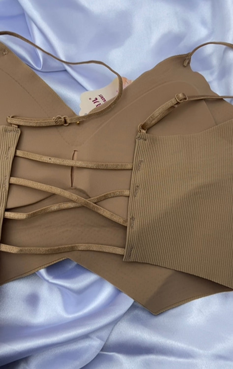 بند های پشت نیمتنه ریبایی چند برابر به آن داده و تبدیل به یک کار فانتزی کرده است